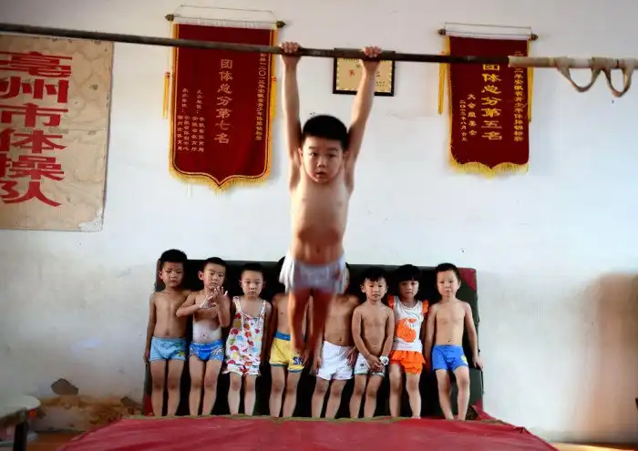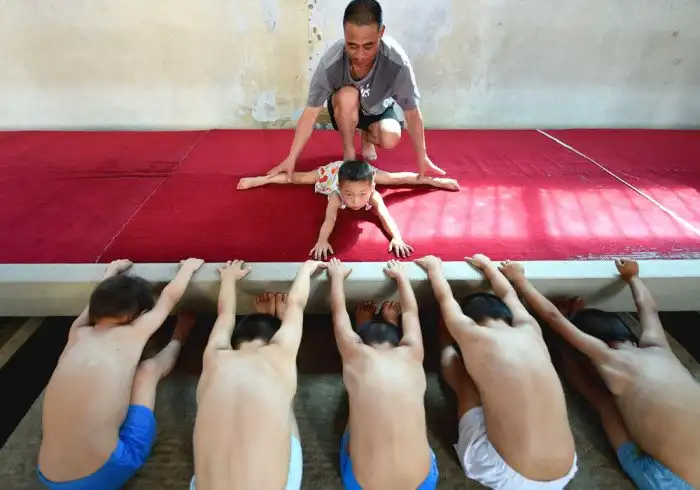 Эти кадры сделаны в детском летнем гимнастическом лагере в городском округе Бочжоу, провинция Аньхой, где малыши не просто отдыхают, но еще и улучшают свою физическую форму. Благодаря ежедневным занятиям дети повышают гибкость своих тел, учатся выполнять некоторые акробатические элементы, тренируют силу и воспитывают силу духа.