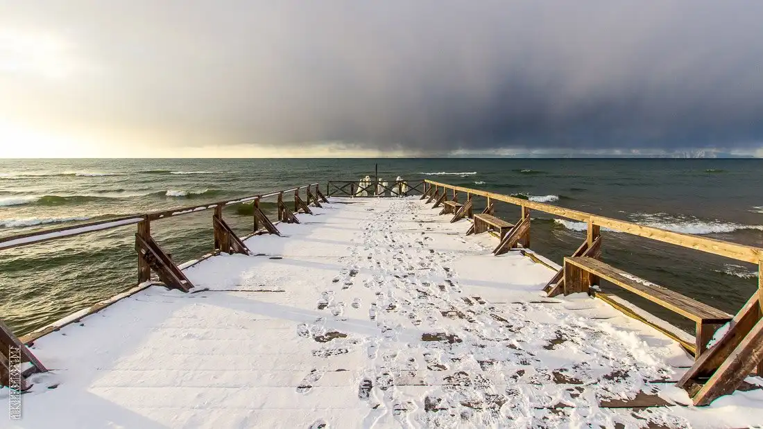Песчаный пляж чист, вода относительно тёплая и не даёт в полосе прибоя намерзать льду.