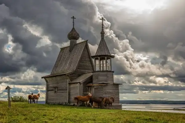 Часовня Святого Пахомия Кенского в деревне Карпова находится на восточном берегу Долгого озера. Одно из самых высоких мест на Кенозере.