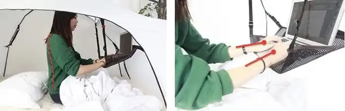 Американская компания iKamper, занимающаяся выпуском палаток для дома, представила свою последнюю разработку под названием Room in Room («комната в комнате»). Палатка плотно крепится к матрасу кровати и удерживает тепло, произведенное телом спящего человека. Как и другая продукция iKamper, палатка должна сократить затраты на отопление помещений. Хлопковый тент с добавлением полиэстера крепится на алюминиевый каркас, а вверху имеется отверстие для вентиляции воздуха. При желании внутри такой палатки можно смотреть фильмы или работать с ноутбуком, используя регулируемую подвесную подставку в качестве стола. А еще подобное решение возвращает нас в детство, когда мы все строили свои собственные домики из подушек и одеял.