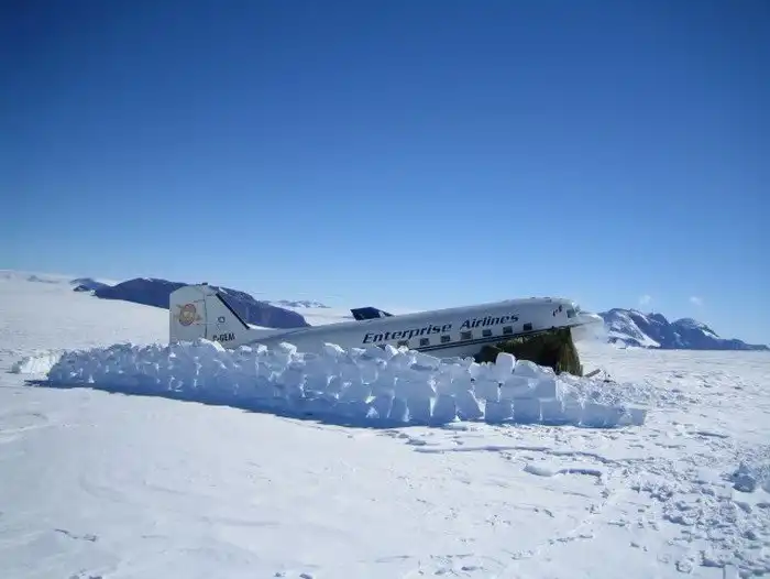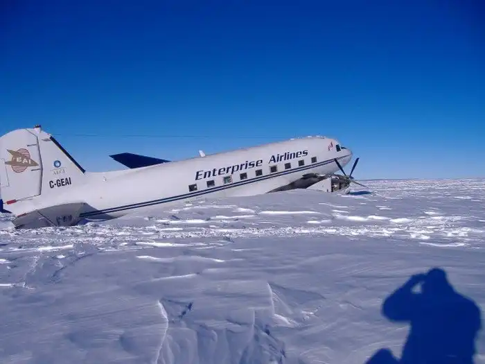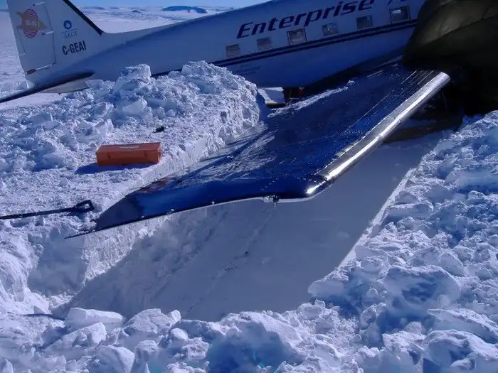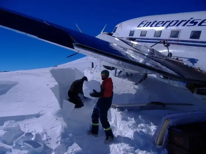 Небольшой канадский транспортный самолет Basler BT-67, доставляющий продовольствие и оборудование международным экспедициям на Антарктиде, во время приземления повредил стойку шасси о ледяные торосы и нуждался в ремонте. Ремонт решено было провести собственными силами. Трое человек в течение 8 дней ставили самолет «на ноги» и сняли интересный фотоотчет о своей работе.