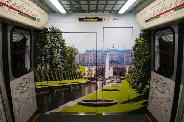 А это двери вагона метро в Санкт-Петербурге, на них специально нарисовали какой-то красивый европейский дворец, чтобы унылые петербуржцы знали, что где-то на западе есть такая красота, которой никогда не будет в России.