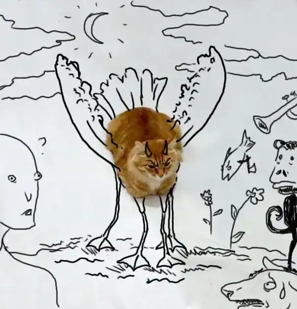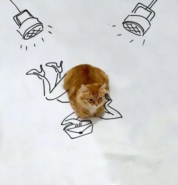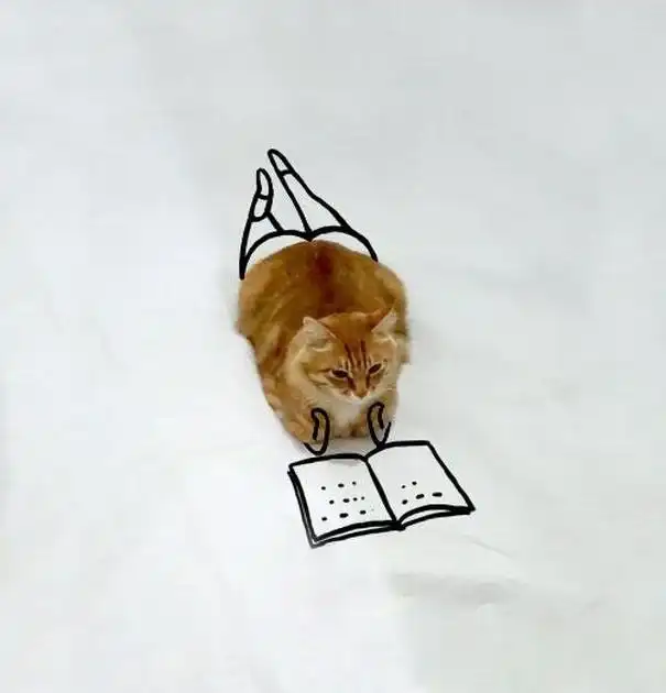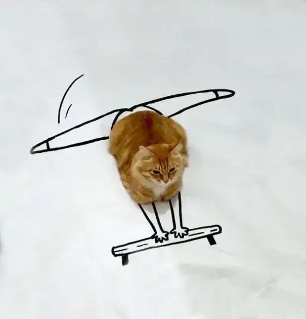 Художники решили поэкспериментировать с фотографией сидящего кота, дорисовывая к нему различные элементы и формируя тем самым новую картинку. Получается некое подобие известного теста на определение творческих способностей, но гораздо интереснее и смешнее оригинала.