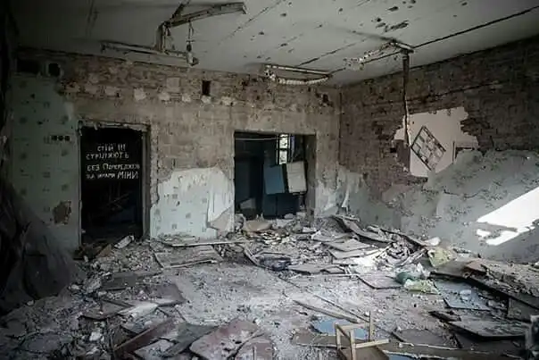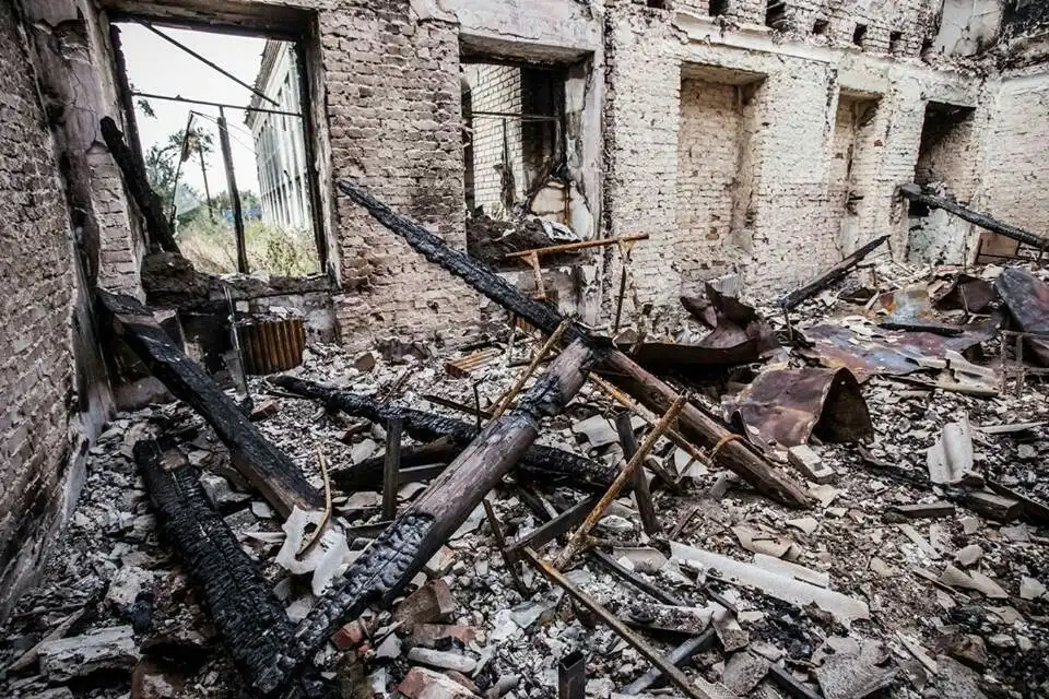 Руины поселка Пески - линия фронта. Ровнять все по Аэропорт.