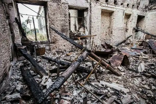 Поселок Пески - окрестности Донецкого Аэропорта. Разрушен на 90% .Домов которые не пострадали нет!!!