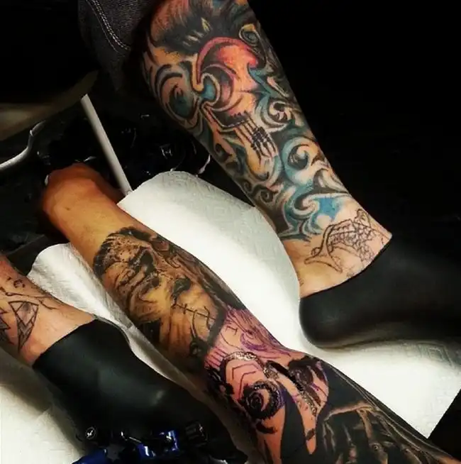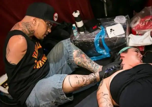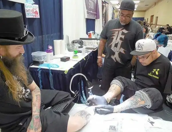 Безрукий тату-мастер Брайан Тагалог набивает татуировки при помощи ног