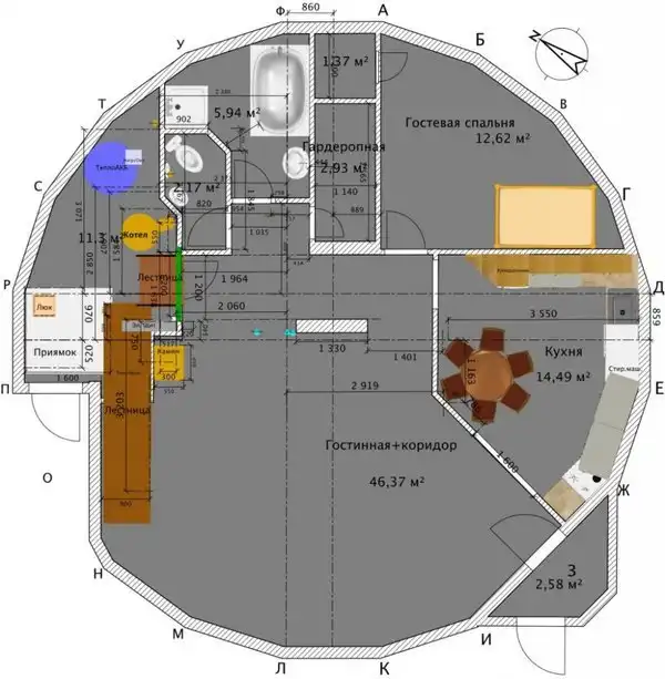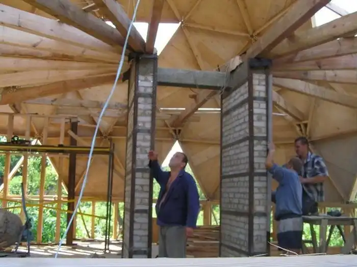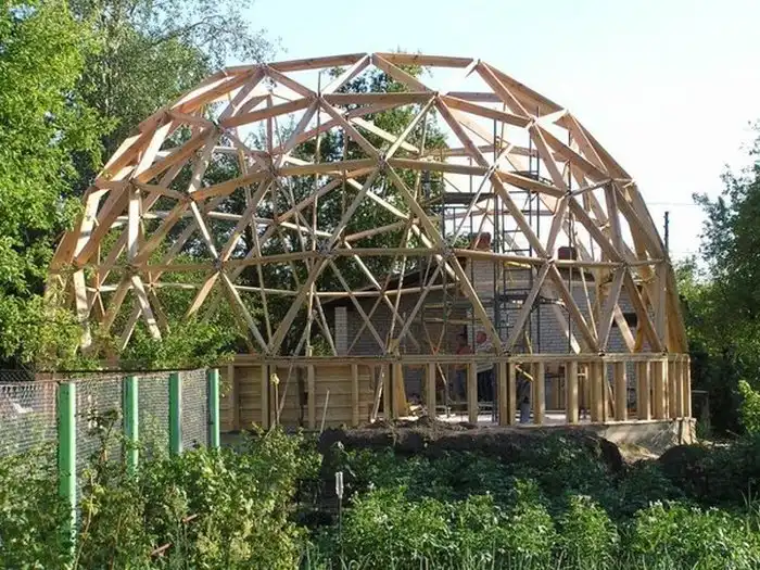 Фундамент не круглый, это многоугольник он повторяет основание геодезического купола и состоит из 20 секторов.