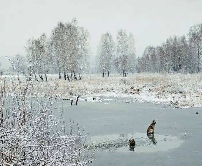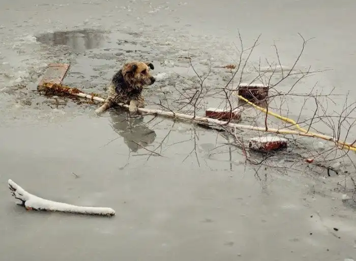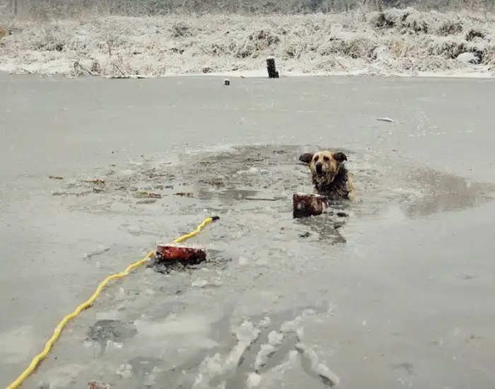 Спасение собаки, угодившей в ледяную ловушку