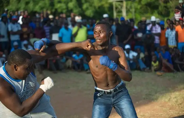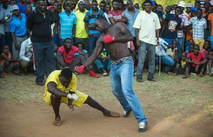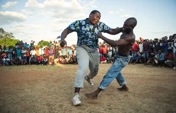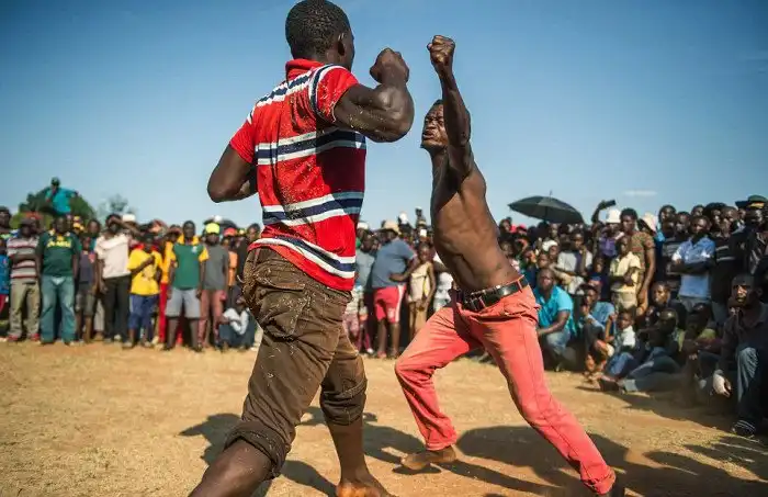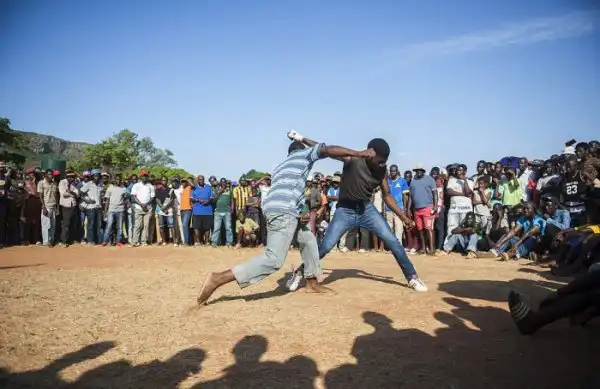 Каждый год в канун католического Рождества в деревне Габа, провинция Лимпопо, ЮАР, проводятся кулачные бои Мусангве, традиция которых была положена местным племенем венда. В кулачных боях, которые проводятся в формате турнира на вылет, принимают участие все желающие мальчики, подростки и мужчины. Бои продолжаются до тех пор, пока у одного из противников не появится кровь или до нокаута. Кроме того бой может быть остановлен, если один из соперников решит сдаться. Как проходят эти кулачные бои, нам расскажут фото с места события.