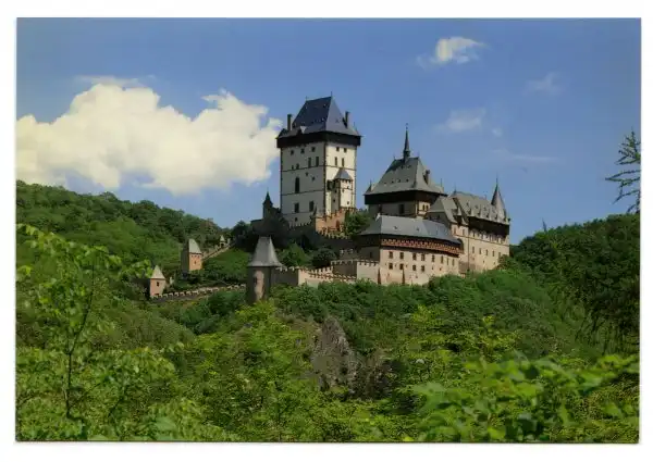 В нескольких километрах от Праги, в гористой местности полным вилл XIX века, стоит готический королевский замок Каррлштейн XIV века.