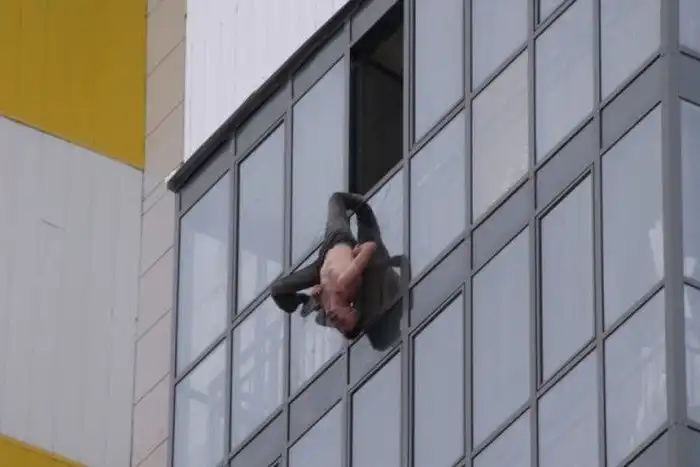 В Новосибирске мужчина полчаса провисел за окном 15 этажа