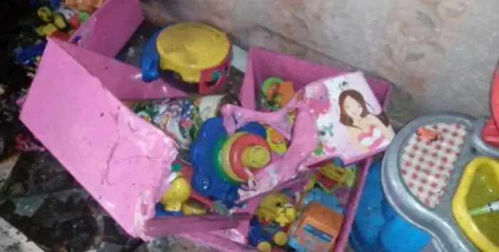 Из-за беспечности некоторых людей на Новый год случаются различные происшествия, которые могут испортить праздник любому человеку. Перед вами квартира, пострадавшая от запуска фейерверка. Салют попал в пластиковое окно, прожог его и оказался в детской комнате, которая была практически полностью уничтожена. К счастью, в тот злосчастный момент в квартире никого не было, однако, по возвращению хозяев их ждала весьма печальная квартира.