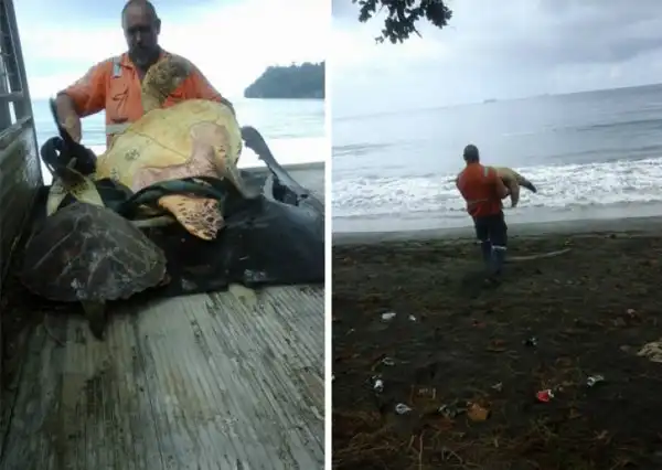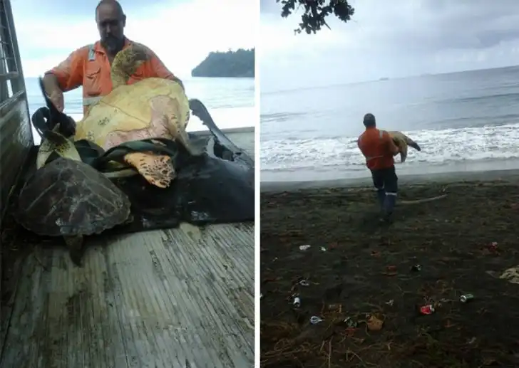 Аарон Каллинг и его коллега спасают морских черепах, покупая их на местном продуктовом рынке в Папуа - Новая Гвинея и отпуская в море