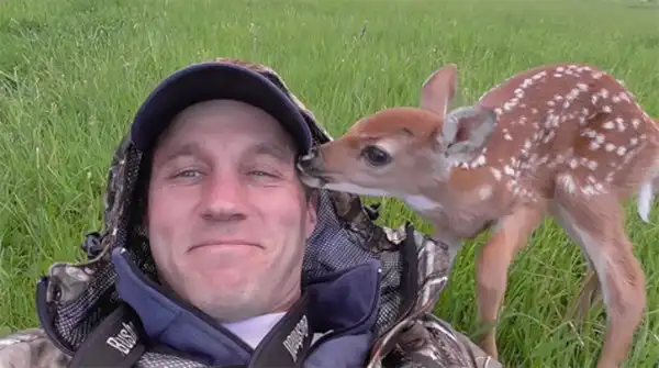 Олененок отказывается покидать своего спасителя