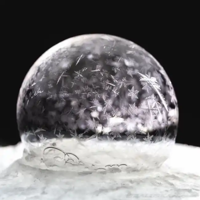 Вы когда-нибудь видели, как выглядит замороженный мыльный пузырь? Если нет, то теперь у вас есть такая возможность благодаря польскому художнику Пабло Залуска (Pablo Zaluska), заморозившему обычный мыльный пузырь при температуре -15 градусов Цельсия.