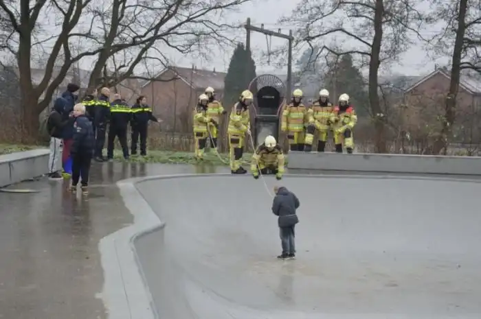 Довольно глупая ситуация произошла в небольшом городке в Нидерландах, где парень спустился в квотер для скейтбордистов и не смог из него выбраться без помощи спасателей из-за скользких стенок. Теперь прежде чем куда-либо лезть он хорошенько подумает и проверит, сможет ли он самостоятельно выбраться обратно.