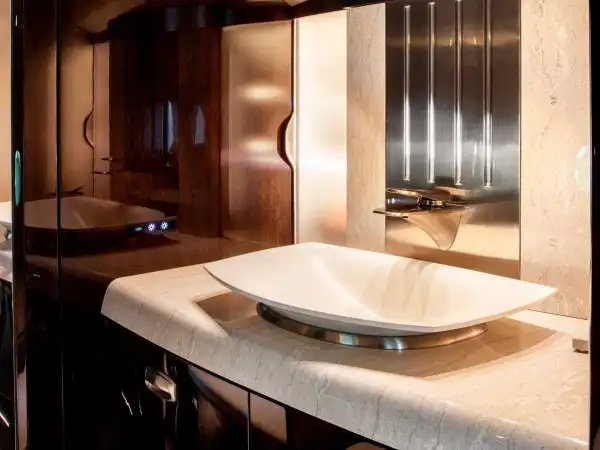 В лайнере также есть спальня с большой кроватью и собственным санузлом