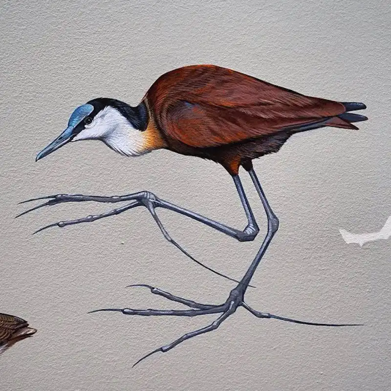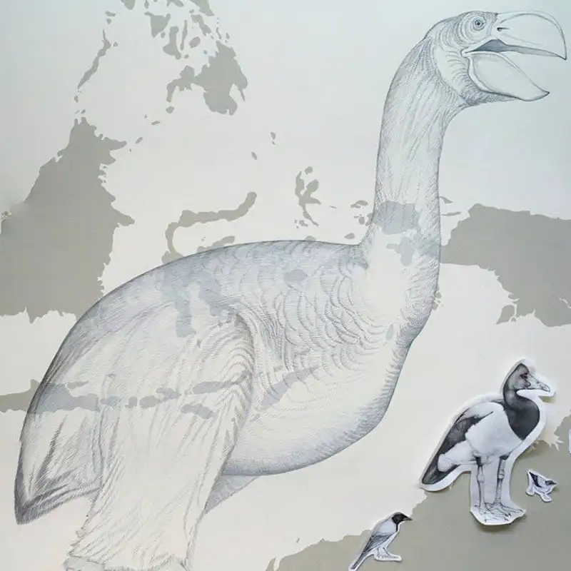 Иллюстратор Джейн Ким потратила 14 месяцев на то, чтобы изобразить более 260 различных видов птиц на гигантской фреске. Все началось во время стажировки в Лаборатории орнитологии при Корнельском университете, когда ее руководитель предложил Джейн проект, демонстрирующий 375 миллионов лет эволюции и разнообразия птиц. Чтобы добиться более впечатляющего результата, Джейн Ким увеличила размер каждой птицы и даже представила 26 вымерших видов, таких как додо.