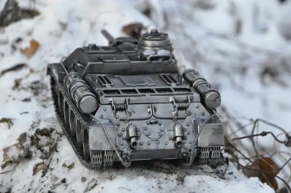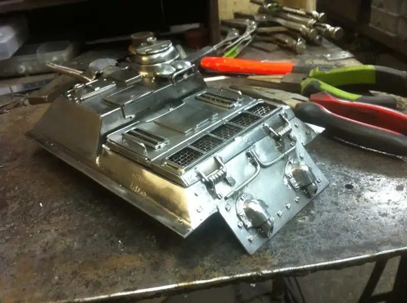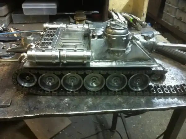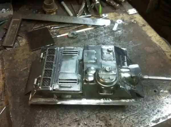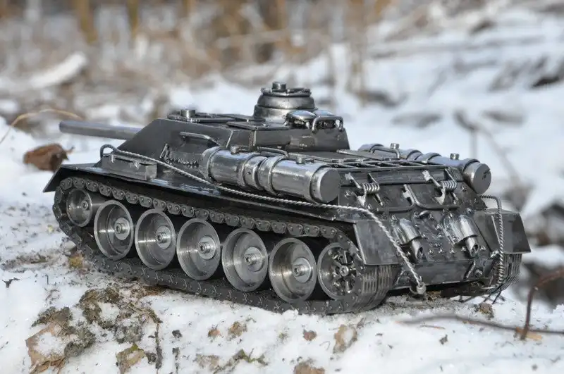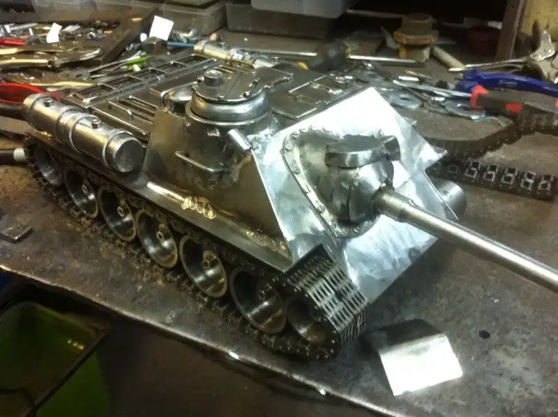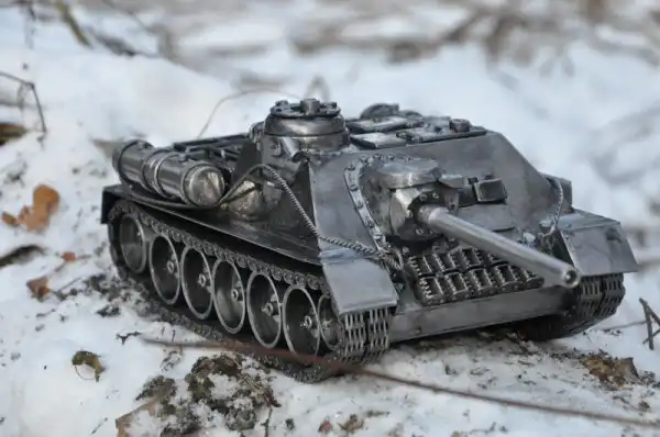 Той зимой делал тигр. Человек которому делал попросил сделать ещё что ни будь времён войны. Только попросил т — 34 не делать. Вот что получилось. Длинна со стволом 40 см ширина 17см.Вес получился 4 кг. Ну отсек для заначки предусмотрен. Ну и немного фотографий как делалось.