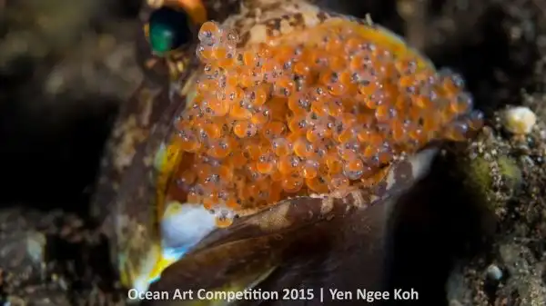 Невероятно заботливая рыба семейства опистогнатовых переносит свое потомство (икринки) прямо во рту. Снимок сделан у берегов Бали, Индонезия.