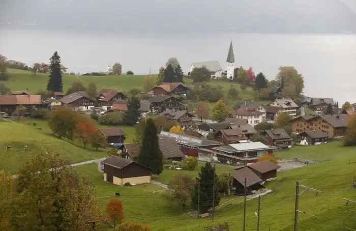 Это город Фаулензее, Швейцария, 19 октября 2015. На переднем плане — бывшие артиллерийские крепости швейцарской армии. Никогда и не найдешь их. (Фото Arnd Wiegmann | Reuters):