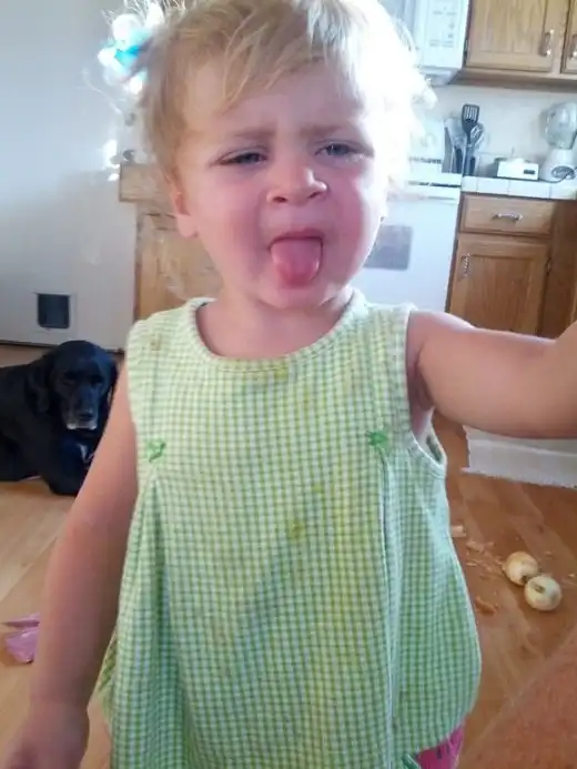 Как рассказал автор этих фото, его дочь захотела съесть яблоко. Но вместо яблока бедняжка взяла луковицу и от души откусила большой кусок. В этот момент бедный ребенок понял, что жизнь полна разочарований и не так проста, как кажется. Что касается отца, он оказался тем еще троллем, который взялся за камеру вместо того, чтобы дать настоящее яблоко своей расстроенной дочери.