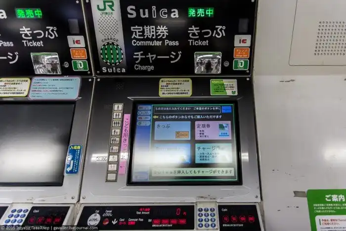 Автоматы тоже, на первый взгляд, очень жуткие. Но попробуйте разобраться – всё очень просто! Английский язык есть. Купите пополняемую prepaid карточку и катайтесь в свое удовольствие. У меня была зеленая SUICA, которой можно расплачиваться и в некоторых вокзальных лавках.