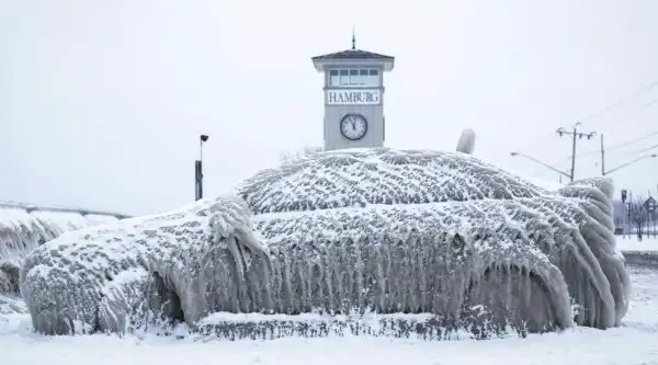 Машина в Гамбурге покрылась льдом. Владелец оставил ее на ночь на улице возле ресторана, а на утро обнаружил такую картину.