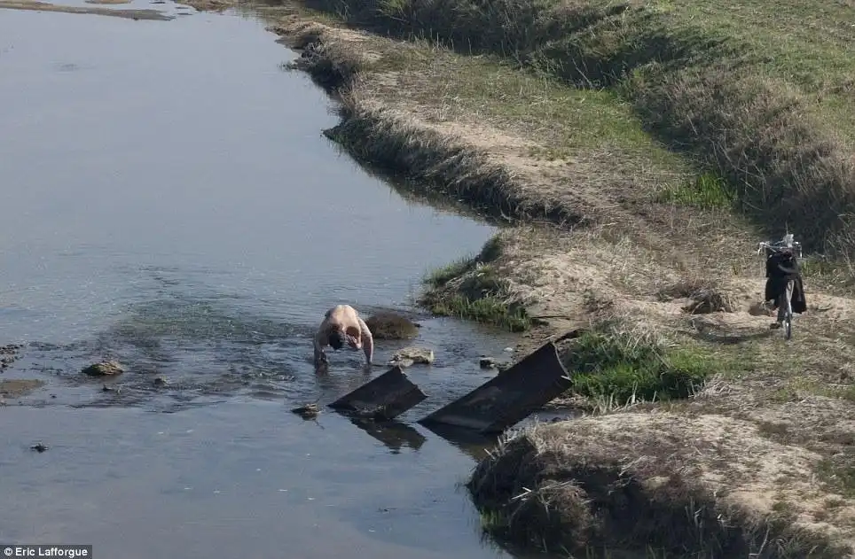 Мужчина моется в реке у Пхеньяна. "В сельских областях такое встречается довольно часто"