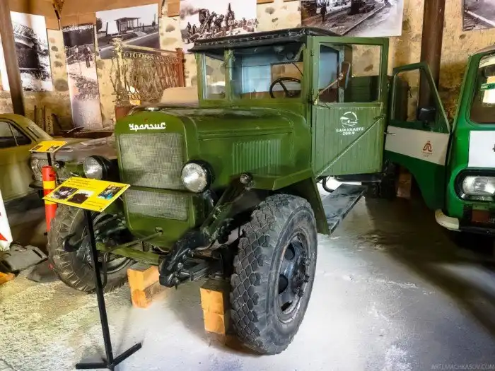 Грузовик УралЗИС, он же упрощенный ЗИС-5В, знаменитая «трехтонка» военных лет. Этот грузовик был результатом эволюции АМО-3, восходящего в свою очередь к АМО-2, бывшему копией американского грузовика Autocar Dispatch SA. Но все детали ЗИС-5 были советского производства. Упрощенная модель 5В отличалась от ЗИС-5 фанерной кабиной из дерматина и палок (не шутка). Также у этой модели крылья из листового проката вместо штампованных, только задние тормоза.
