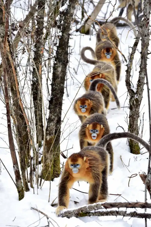 Куда обезьяны по снегу тащатся, сбежали откуда поди.