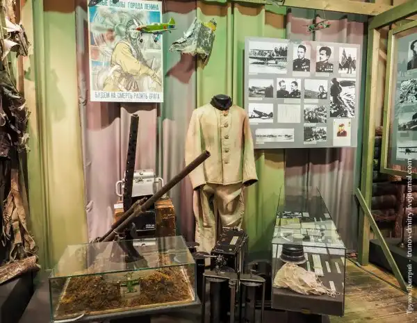 Перед вами кабинет партийного работника, которые вносили свой вклад в городскую жизнь и оборону Ленинграда. Что там делает медведь и гармошка — это я не особо понял =)