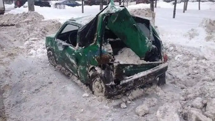 Снегоуборочная машина раздавила автомобиль, приняв его за кучу снега