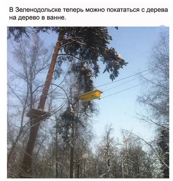де прокатиться в ванне на приличной высоте? Строители, механики, водители и замечательные пассажиры, которым плевать на риск. И уберите от экрана детей, чтобы даже мыслей не было повторять подобное.