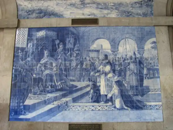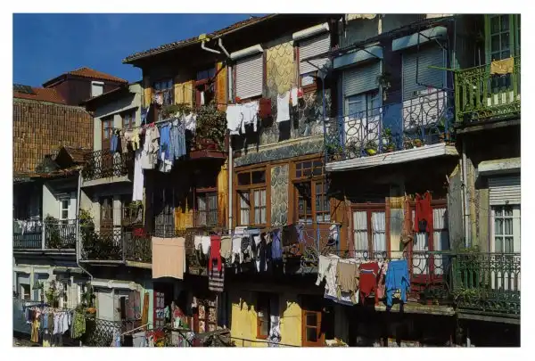 Визитной карточкой архитектуры Португалии является масштабное использование в архитектуре и облицовке домов керамической плитки с рисунками преимущественно в голубых с белым тонах. Художники создавали целые живописные панно из керамических плиток “ажулейош”. Вот, например, целые панно на стенах вокзала Порту.