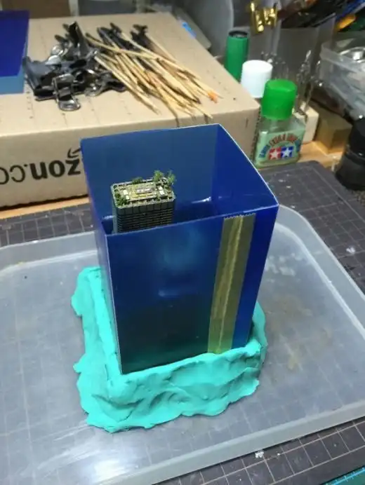 Далее предлагаем взглянуть на фотоотчет по созданию довольно интересной диорамы, изображающей небоскребы затопленного города. Оказывается, что создать нечто подобное не так уж сложно, главное знать технологию.