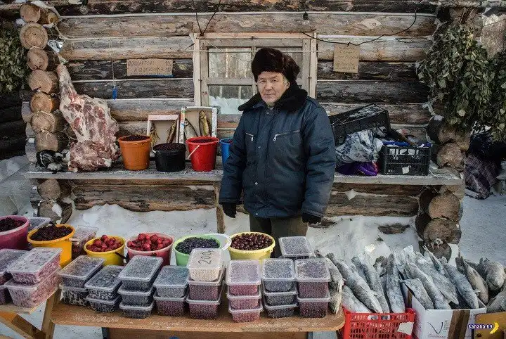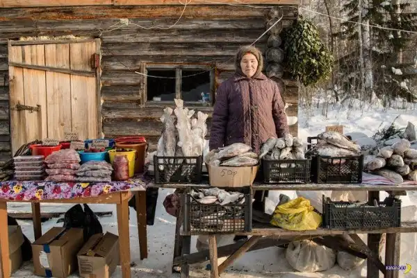 Зато когда приходит зима, по льду реки рядом с поселком прокладывают зимник – дорогу прямо по льду, и по ней устремляется поток автомобилей в еще более отдаленные деревни и поселки. И у края этой сезонной трассы возник небольшой “рынок” – ряд теплых