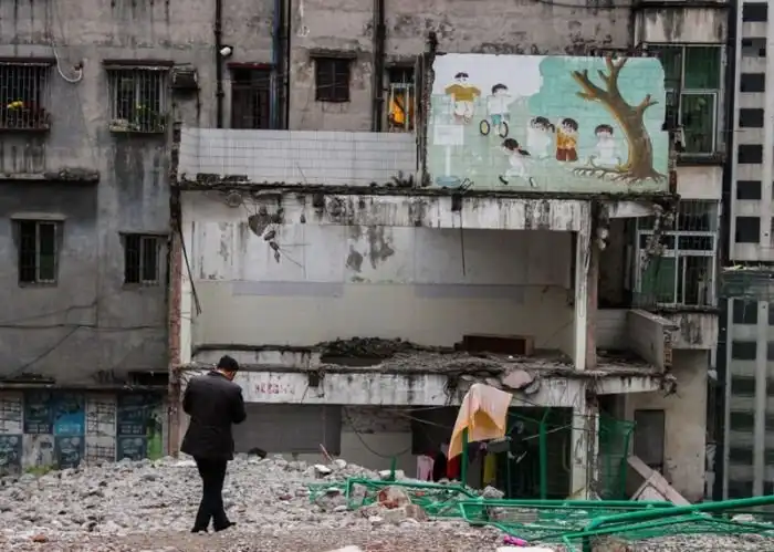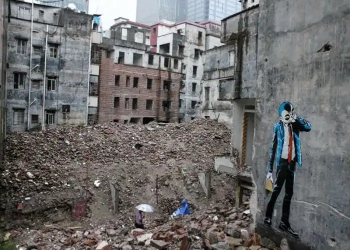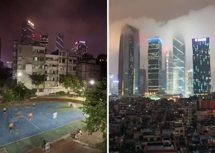 Стремительная урбанизация Китая приводит к тому, что крупные города поглощают все больше окрестных деревень, где вместо старого жилья появляются новые небоскребы. Однако далеко не все деревенские жители спешат покидать свои дома, и в таких случаях можно наблюдать следующую картину. Перед вами типичные контрасты Китая на примере города Гуанчжоу и соседствующей с ним деревни Сян, где старое ветхое наполовину расселенное жилье соседствует с большими современными небоскребами.