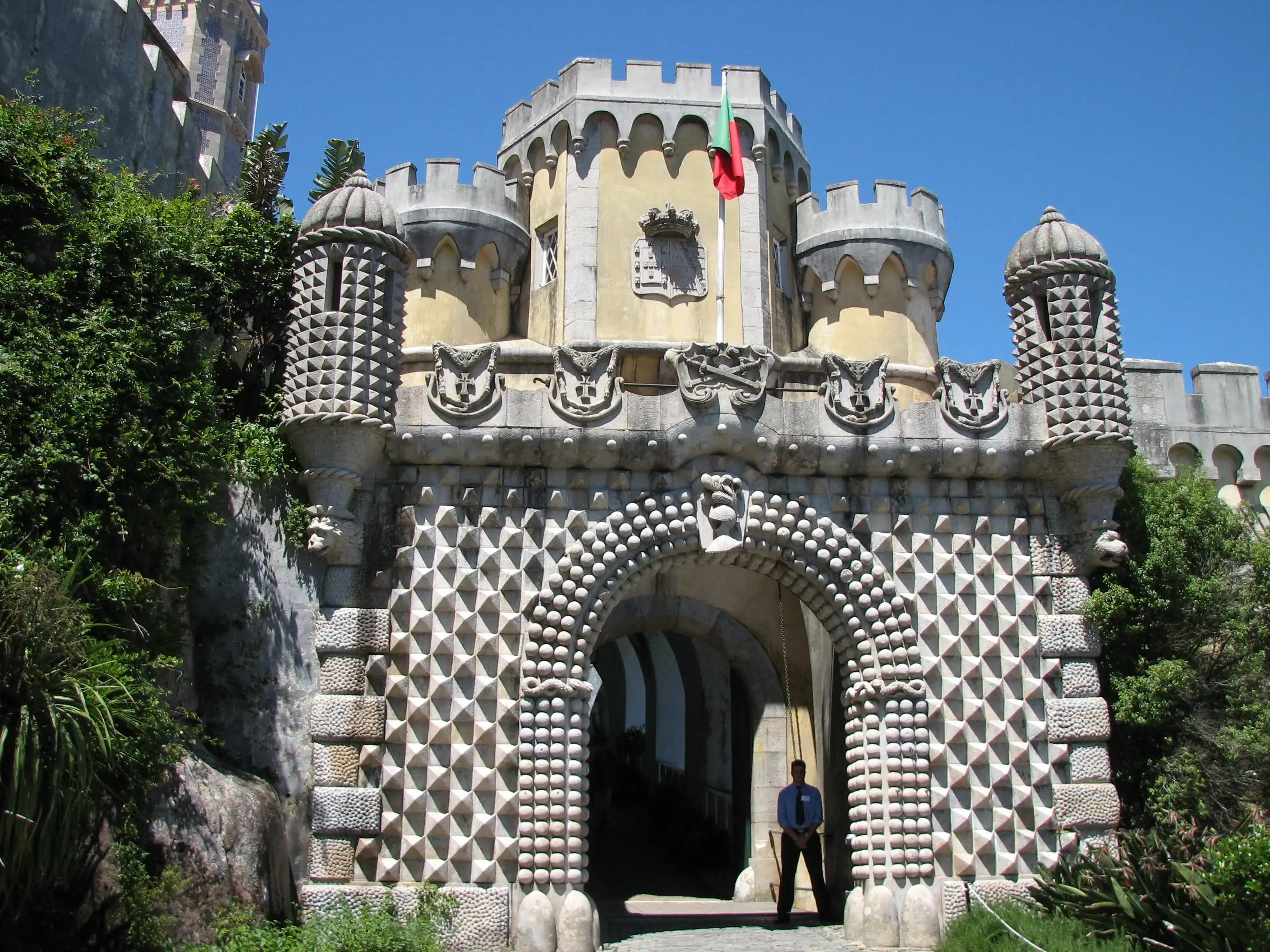 Сегодня мы посетим королевский дворец Пена и парк в городе Синтра - он находится на высокой скале над Синтрой и отличается фантастическим псевдосредневековым стилем. Вся композиция из горы, замка и прилегающего парка площадью 270 гектаров — один из ранних образцов романтической ландшафтной архитектуры XIX века.