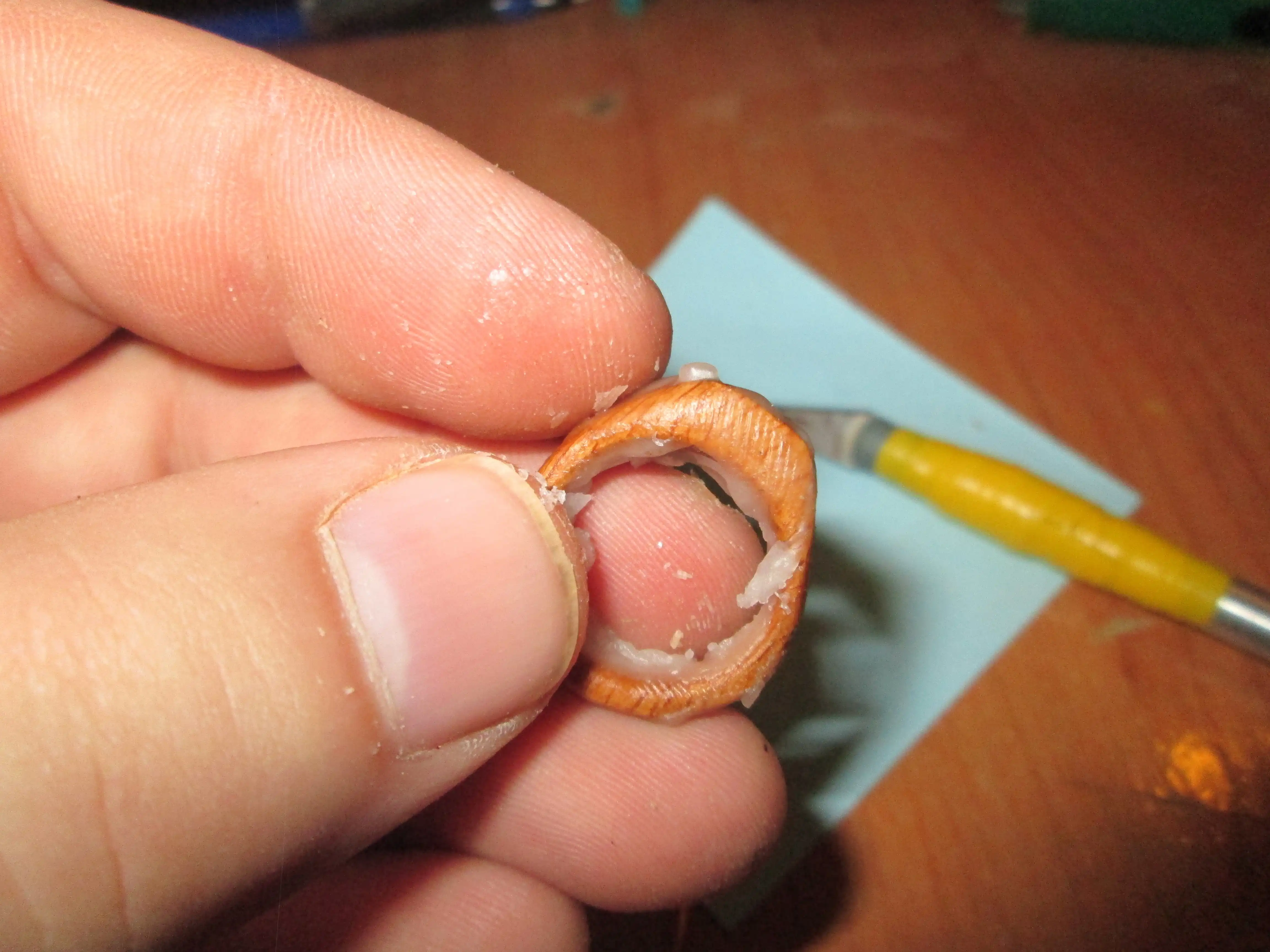 Ну а дальше все очень монотонно и просто. Шлифовка об уже упомянутую ленту. Для шлифовки внутренеей части я просто отрезал кусочек ленты, примерно 2 см шириной, и закрутил его в трубку.