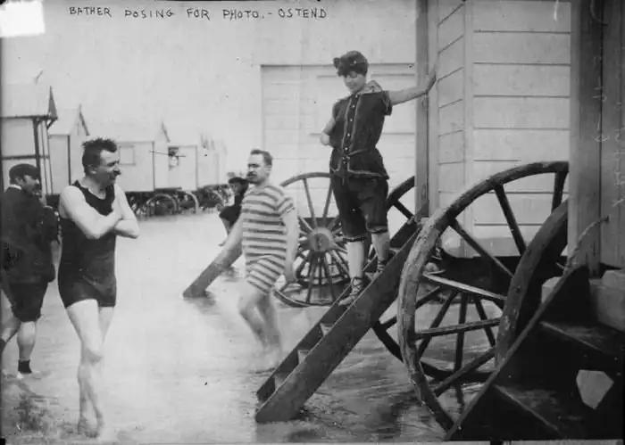 Для купания на морских пляжах в XVIII и XIX веках в России, Австро-Венгрии и других странах использовались так называемые купальные машины или купальные фургоны. Они позволяли мужчинам и женщинам сохранять правила приличия тех времен и являлись необходимой составляющей пляжного этикета. Крытая повозка с деревянными или брезентовыми стенками скрывала купальщиков от посторонних глаз и приводилась в движение лошадьми, хотя на отдельных пляжах фургоны спускались по рельсам.