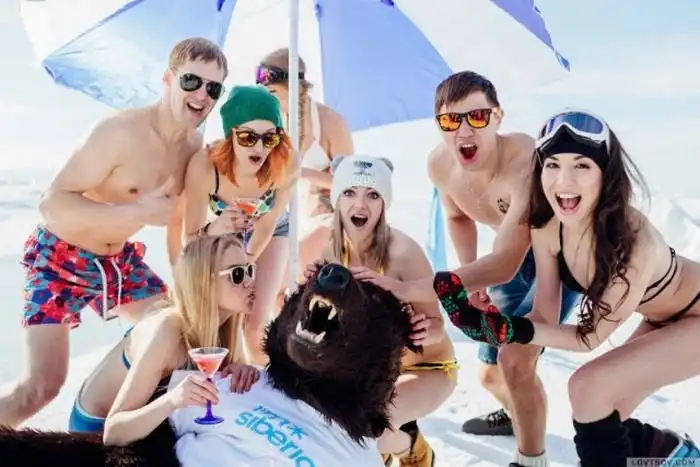 На Байкале при 20-градусном морозе прошла вечеринка в купальниках, устроенная проектом «Я*Сибиряк». В течение 5 часов 10 молодых людей развлекались и согревались всевозможными способами. Они играли в волейбол, пили горячий чай, танцевали, дурачились и фотографировались. «Было весело и не холодно! Под ногами трещал лед - Байкал живой, он дышит, и иногда казалось, что мы качаемся на его волне», - поделилась впечатлениями одна из участниц мероприятия Алена Исаева. «Ослепительный белый песок, красивые синие волны до горизонта — такие потрясающие виды вы вряд ли найдете летом», - отметил организатор вечеринки Михаил Губаль. Проект «Я*Сибиряк» стартовал в 2012 году и его целью является популяризация зимнего отдыха в Сибири.