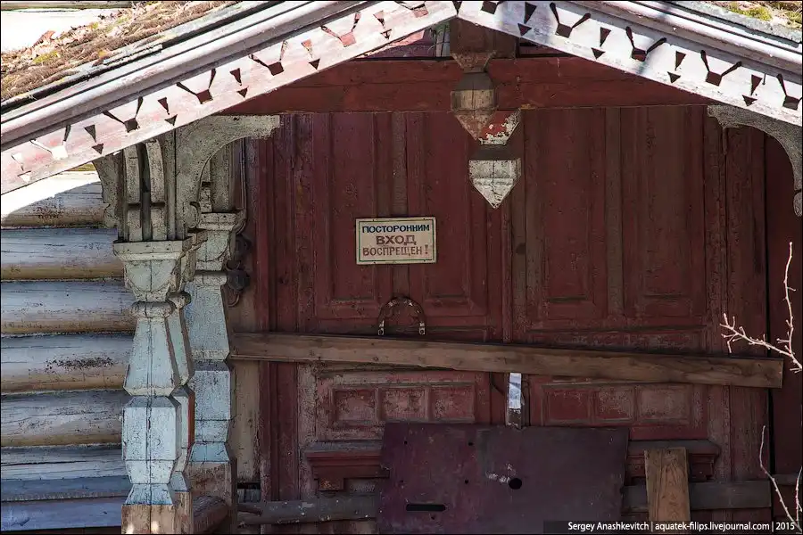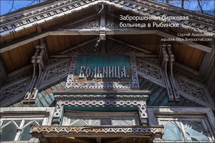Ничего себе, какой старый деревянный дом. Присматриваешься, а на нем надпись "Больница". Тоже деревянная, да еще и резная!