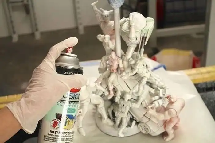 Если у вас есть старые детские игрушки и подобная лампа, можно сделать довольно интересный предмет интерьера, который поразит ваших гостей своей оригинальностью.