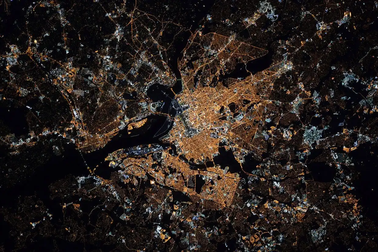 Вашингтон, округ Колумбия в ночное время. (Фото Scott Kelly | NASA)