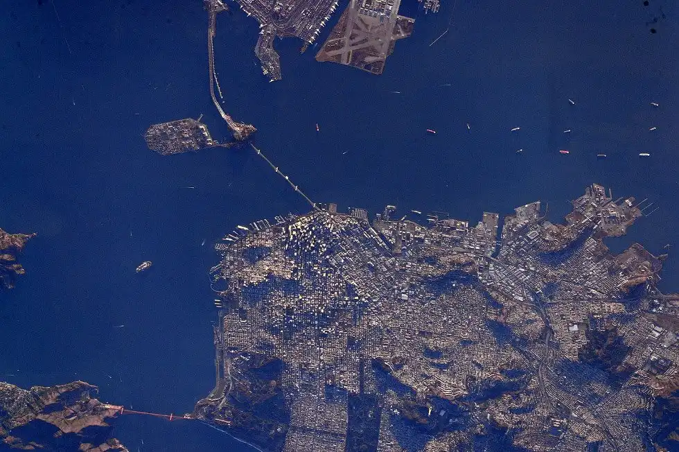 Сан-Франциско, штат Калифорния. Слева виден мост Золотые ворота. (Фото Scott Kelly | NASA)