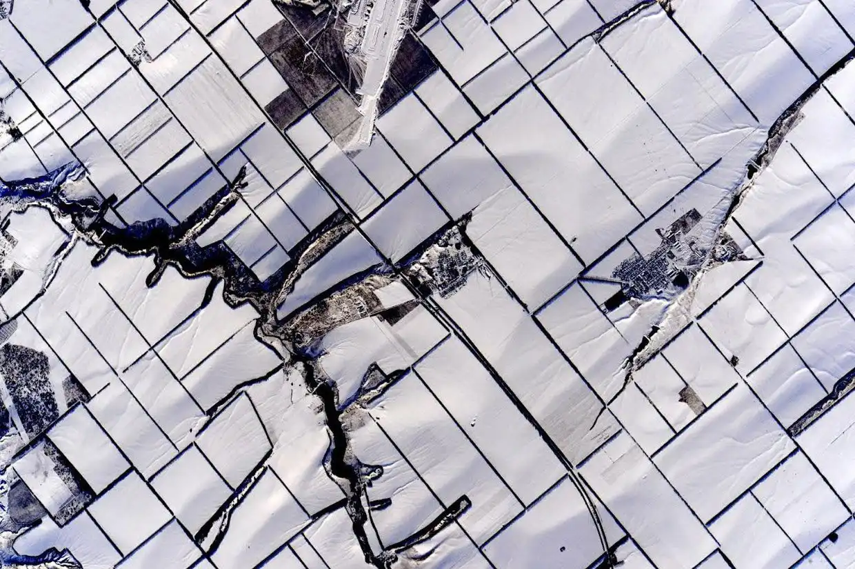 Заснеженные поля. (Фото Scott Kelly | NASA)