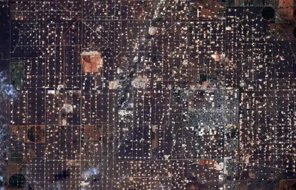 Нефтяные месторождения в Западном Техасе. (Фото Scott Kelly | NASA)