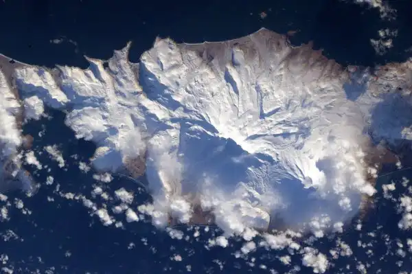 Алеутские острова — архипелаг вулканического происхождения, образующий дугу от побережья Аляски к основанию полуострова Камчатка. Архипелаг ограничивает с юга Берингово море. (Фото Scott Kelly | NASA)