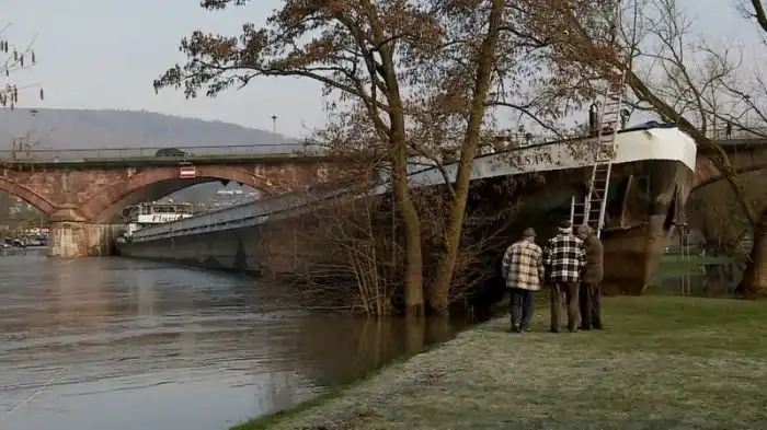 В Германии в сельском районе Майн-Шпессарт пьяный шкипер посадил на мель сухогруз, пытаясь проплыть под автомобильным мостом. Посадил на мель, это еще мягко сказано, на самом деле судно частично оказалось на берегу. Как горе-моряк при этом стоял на ногах, неизвестно, ведь в его крови обнаружили 1,5 промилле алкоголя.